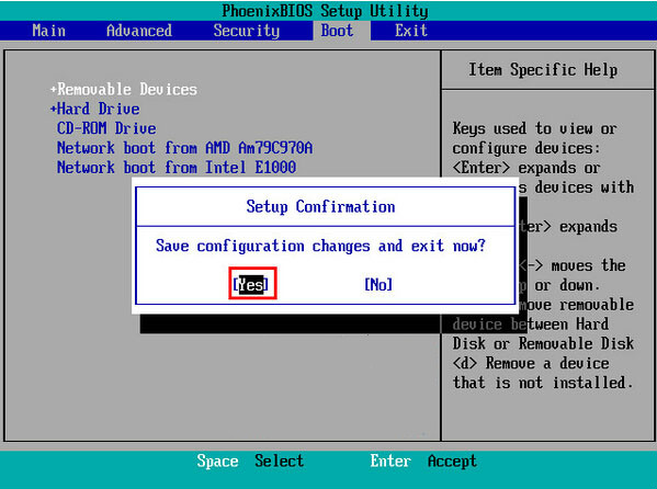 4.U盘选项调整至首位后,按F10,弹窗选择“yes”,回车确定,即可实现从u盘启动了。