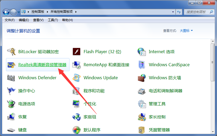 3、在控制面板 - 所有控制面板项,找到并点击Realtek高清晰音频管理器;
