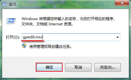 2、在运行窗口中,输入 gpedit.msc ,按确定或回车,打开本地组策略编辑器;