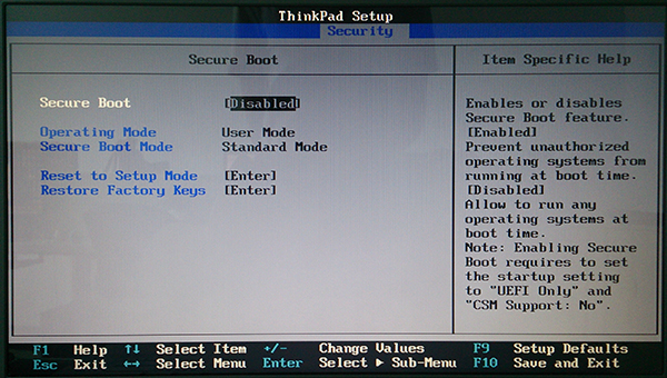 步骤3:完成了上面的2步之后,我们可以看到Secure boot后方括号处原先的enabled即变更为disabled,那么就说明我们设置完成了。
